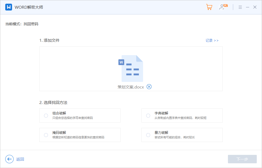 ✔ 多种恢复模式,轻松找回Word文件的密码